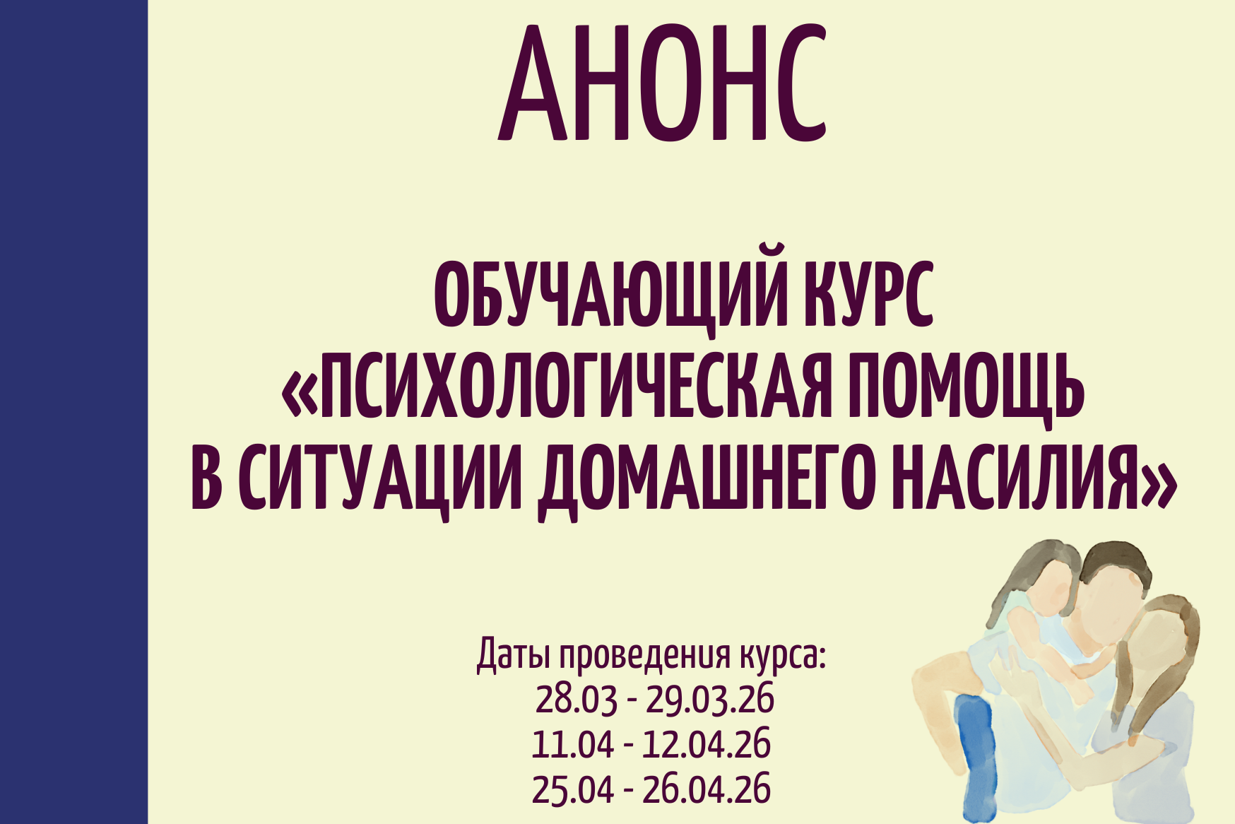 АНОНС! ОБУЧАЮЩИЙ КУРС «Психологическая помощь в ситуации домашнего насилия»