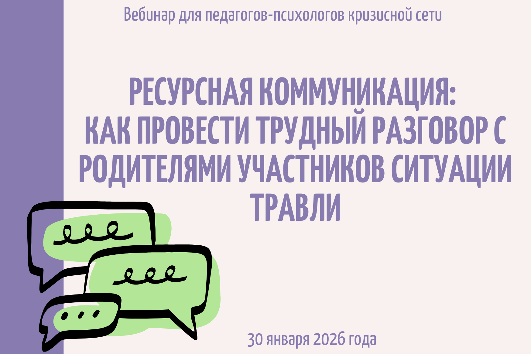 Вебинар для педагогов-психологов кризисной сети «Ресурсная коммуникация: как провести трудный разговор с родителями участников ситуации травли»