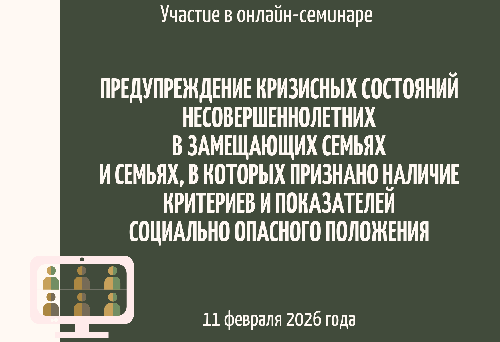 Участие в семинаре «Предупреждение кризисных состояний несовершеннолетних в замещающих семьях и семьях, в которых признано наличие критериев и показателей социально опасного положения»