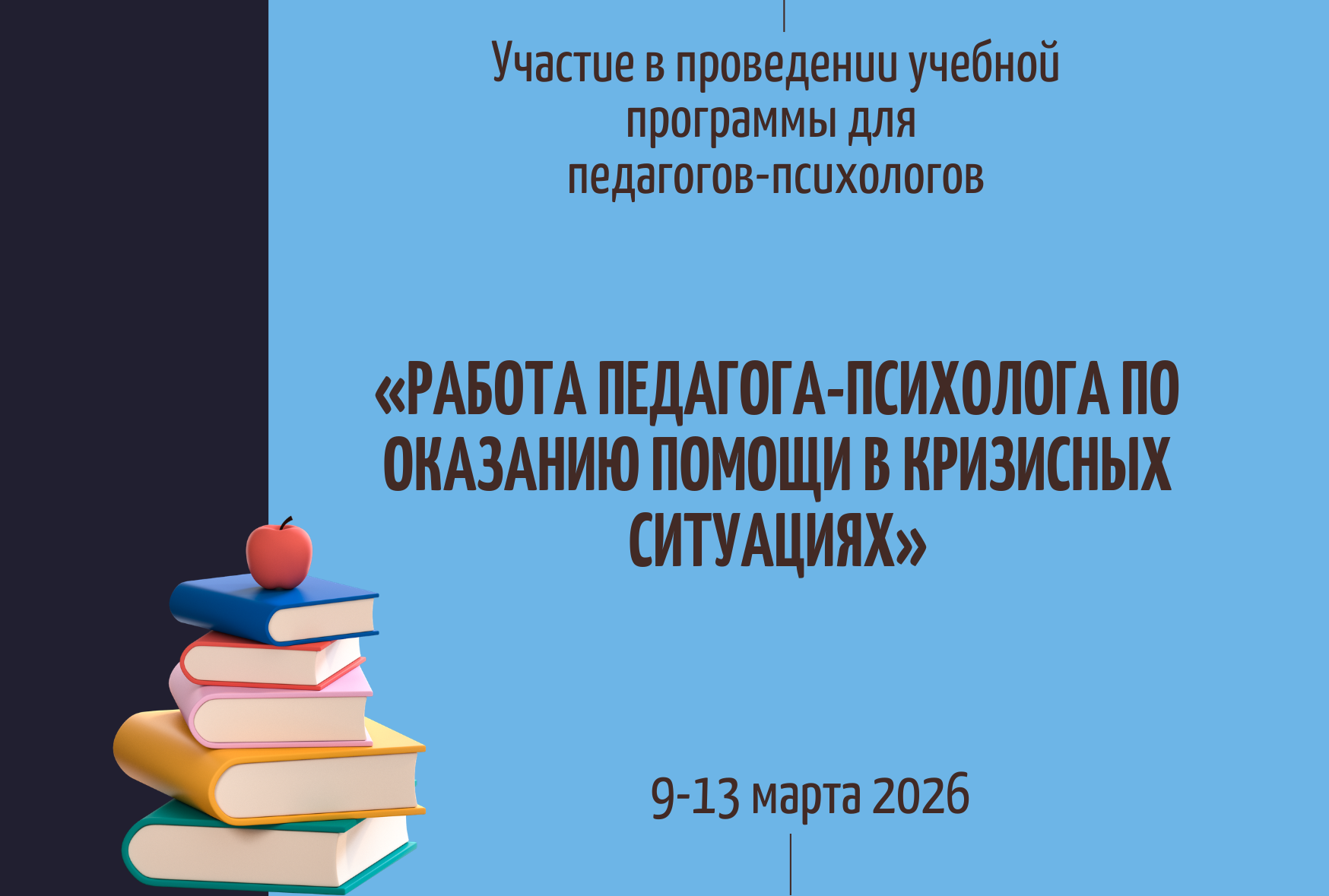 26 февраля 2026 года прошел обучающий вебинар на тему «Кризисная помощь, ещё один взгляд на проблему». Спикером мероприятия выступил Максименко Владимир Сергеевич, педагог-психолог Республиканского (читать дальше)