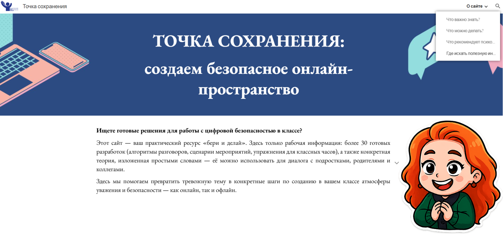 12 января 2026 года в открытом доступе появился практический онлайн-ресурс для педагогов «ТОЧКА СОХРАНЕНИЯ: создаем безопасное онлайн-пространство».