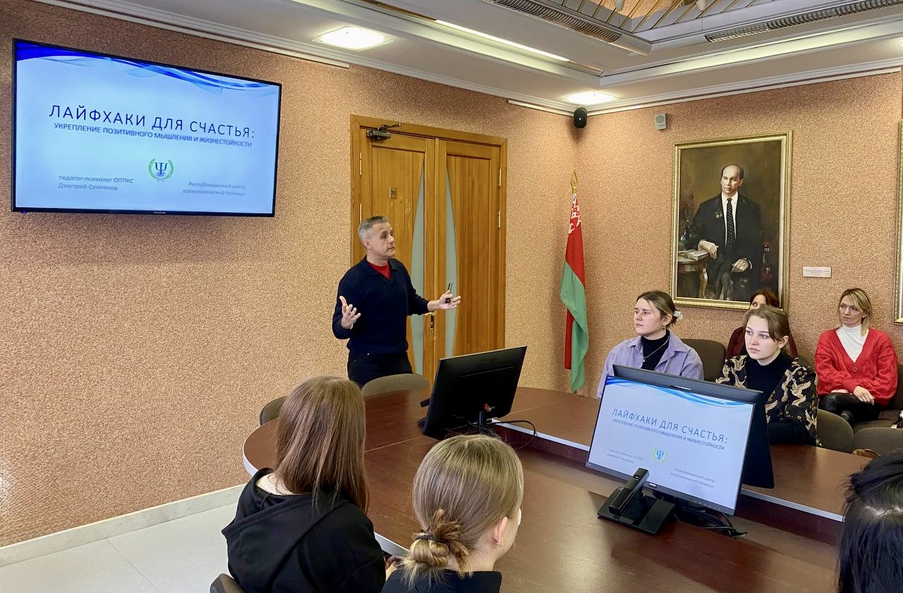 Творческий путь – это не только вдохновение и овации, но и внутренние сомнения, жесткие дедлайны и постоянная необходимость предъявлять результат. В таком режиме психологическое благополучие становится таким же важным профессиональным ресурсом, как талант или навык. Именно о том, как сохранить и укрепить этот ресурс, шла речь на интерактивной беседе «Лайфхаки для счастья: развитие позитивного мышления и жизнестойкости», которая состоялась 24 декабря 2025 года в УО «Белорусский государственный университет культуры и искусств» с участием психолога Республиканского центра психологической помощи Института психологии БГПУ Дмитрия Сенникова.