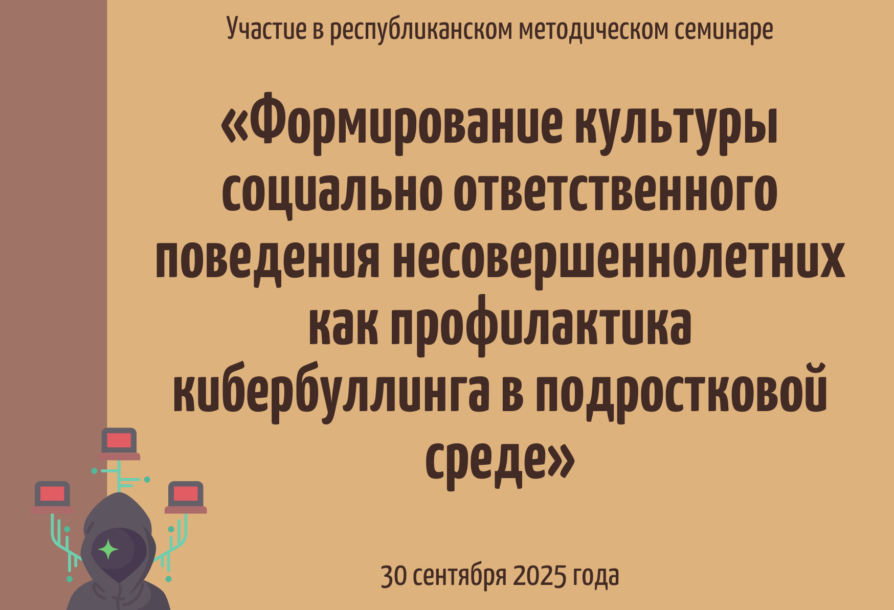 Участие в республиканском методическом семинаре «Формирование культуры социально ответственного поведения несовершеннолетних как профилактика кибербуллинга в подростковой среде».