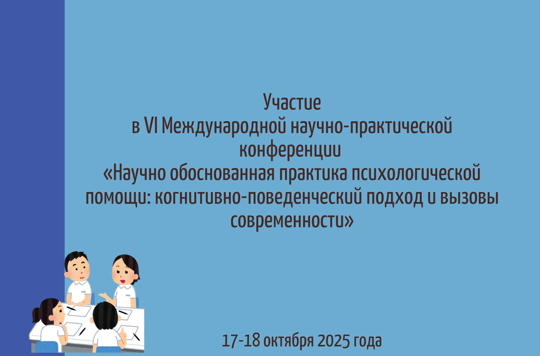 Участие в VI Международной научно-практической конференции «Научно обоснованная практика психологической помощи: когнитивно-поведенческий подход и вызовы современности»